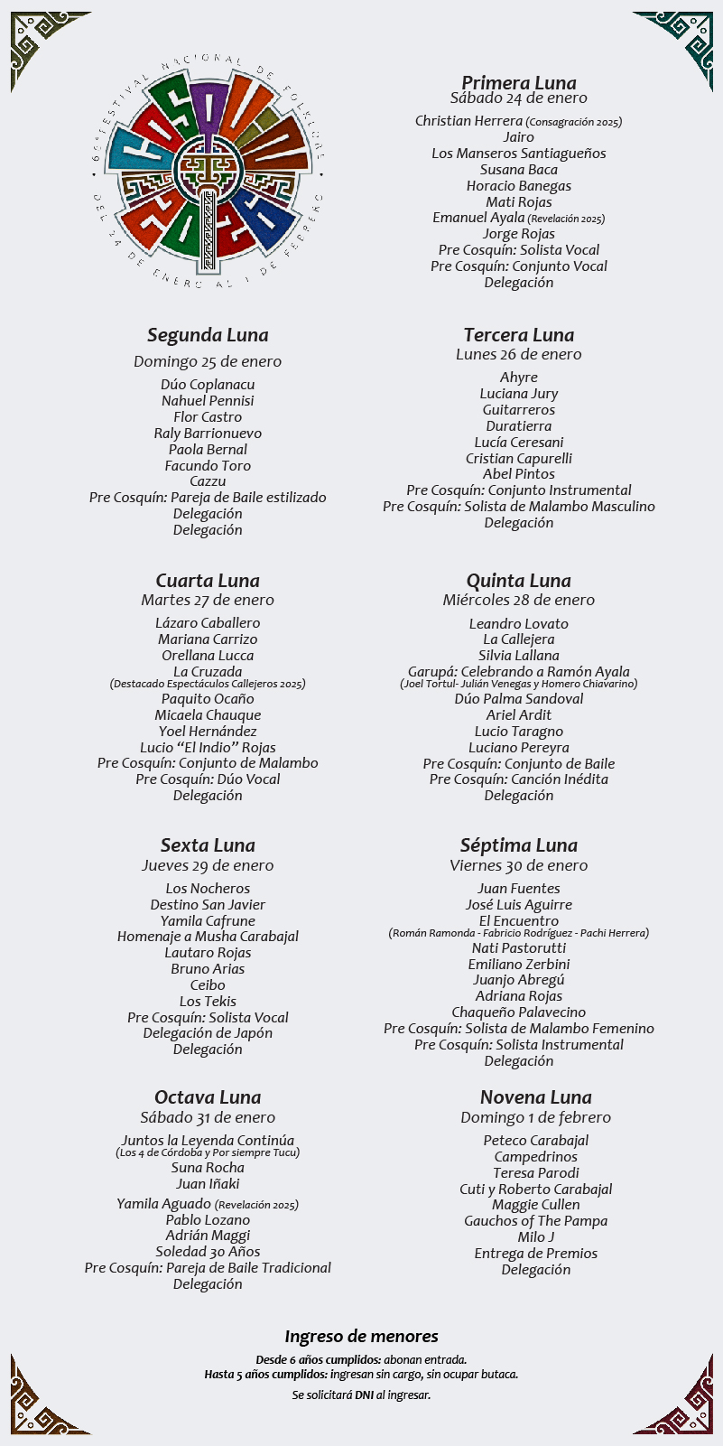 Sábado 24 Enero al Lunes 02 Febrero 2026, 22:00 - 05:00 hrs. (Argentina)